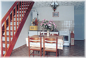 Einfachere Maisonettewohnung für 2 - 3 Personen in Stadt- und Meeresnähe. Im Erdgeschoß ist ein Wohnraum mit offener Küchenzeile
